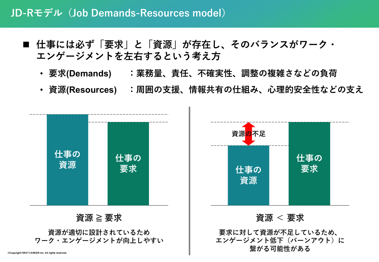重要なのは、成果やメンタルの状態は能力そのものよりも、要求と資源のバランスによって左右されるという点です。