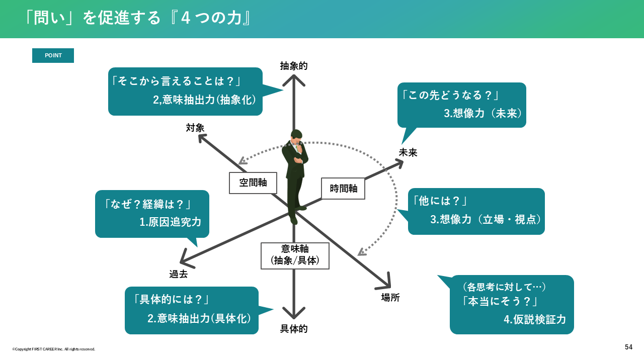 若手がこの4つの問いを使いこなせるようになったうえで、AIを活用してアウトプットを出していく——この組み合わせによって、AIに「答えを作らせる」のではなく、「自分の思考を鍛えるためにAIを活用する」スタンスが形成されます。